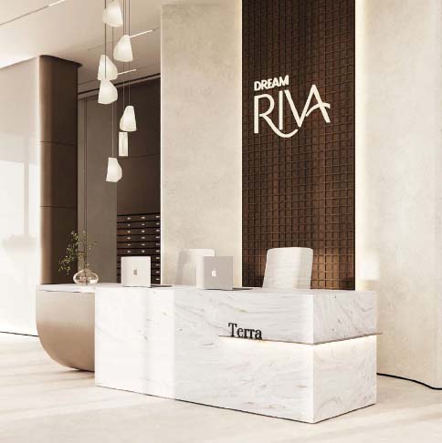 В Dream Riva входные группы становятся продолжением архитектурной концепции трёх башен — ARIA, AQUA и TERRA. Каждое лобби оформлено в собственной стилистике, отражающей образ стихии, и формирует клубную атмосферу уже с первого шага в дом.