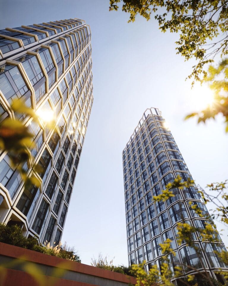 Фасады ориентированы на видовые характеристики: крупные оконные проёмы и панорамное остекление усиливают связь интерьера с ландшафтом. Верхние уровни занимают пентхаусы с террасами, которые становятся приватными видовыми площадками над рекой.